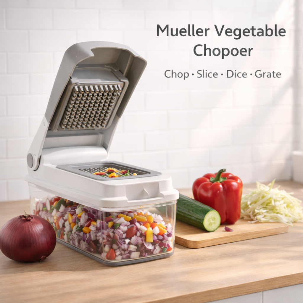 Make meal prep easier with the Mueller Vegetable Chopper Mandoline Slicer, a versatile kitchen tool designed to help you chop, slice, dice, julienne, and grate using interchangeable stainless-steel blades. The built-in container helps catch ingredients as you prep—great for salads, salsa, stir-fries, and weekly meal planning.