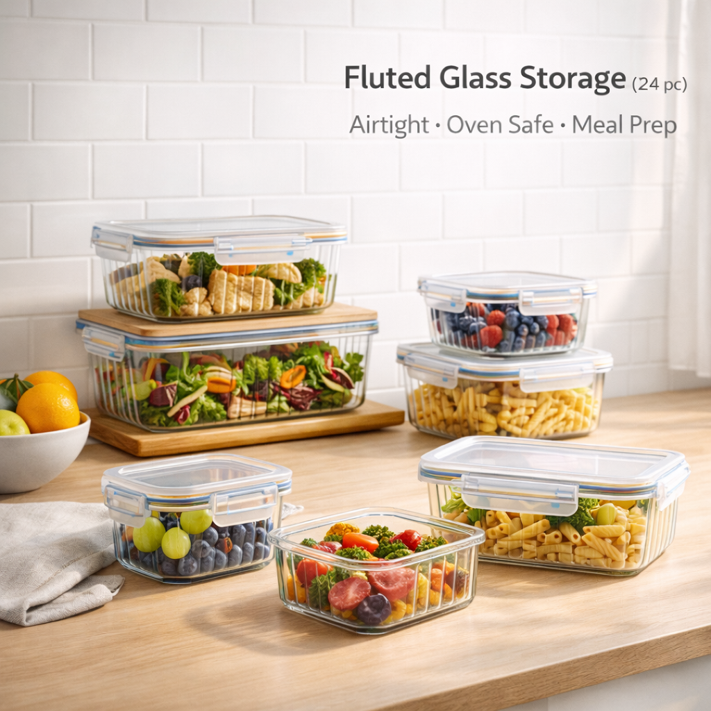 Upgrade meal prep and leftovers with this 24-piece glass storage set featuring 12 clear borosilicate glass containers and 12 snap-lock lids designed for an airtight, leak-resistant seal. The assorted shapes and sizes make it easy to portion lunches, store fresh produce, and keep fridge shelves organized, while the clear glass design lets you see what’s inside at a glance. Great for everyday prep, storage, and reheating with a clean, modern look.