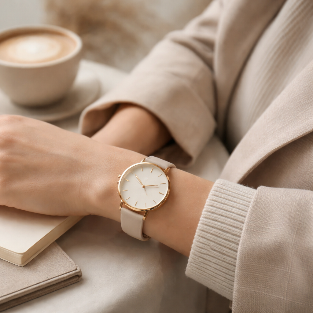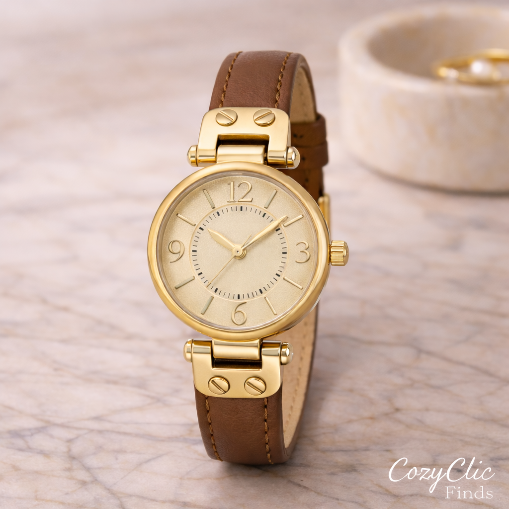 Warm, refined, and easy to wear every day, this watch blends soft champagne tones with a classic leather strap for a look that feels polished without trying too hard.